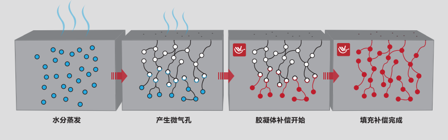 稻殼灰賦予了混凝土自我修復(fù)能力,伴隨混凝土使用過程中產(chǎn)生的微裂縫,能自修復(fù)0.6mm以下細(xì)微裂縫、孔隙和毛細(xì)孔道,使結(jié)構(gòu)主體成為具有自愈合功能的防水屏障。