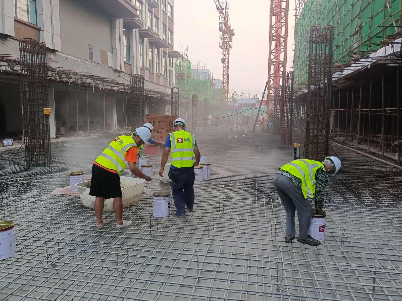 立威采用剛?cè)崛诤系囊惑w化地下工程防水技術(shù),底板和側(cè)墻采用內(nèi)摻立威防水劑的混凝土,實(shí)現(xiàn)防水與澆筑一次成型,結(jié)構(gòu)外部噴涂LV-5水泥基滲透結(jié)晶型防水涂料增加一道防水層,一些開裂、變形風(fēng)險(xiǎn)較大的頂板、節(jié)點(diǎn)等薄弱部位采用柔性防水,將剛性防水與柔性防水完美結(jié)合,從而構(gòu)建起永久性的結(jié)構(gòu)自防水體系。